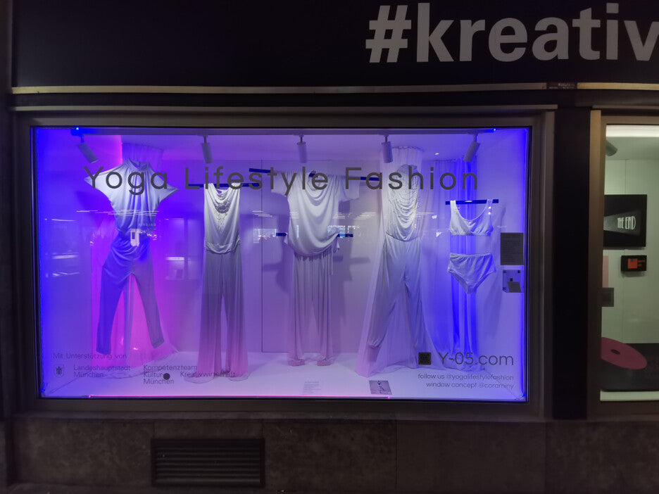 Yvonne Bommels Yoga-Lifestyle-Modelabel Y-05, inspiriert vom Kundalini Yoga, legt großen Wert auf Nachhaltigkeit bei der Auswahl der Textilien, der Produktion und Lieferkette, dem Versand und der Verpackung. Ziel von Y-05 ist es, Luxus und Ökologie zu verbinden und zu präsentieren Yoga-Mode als multifunktionaler Lebensstil. Das Konzept besteht darin, Perlenstickerei und ihre speziellen Techniken neu zu interpretieren und sie auf eine urbanere Art anzuwenden. Y-05 ist eine Mischung aus handgefertigter Stickerei, Komfort, öko-zertifizierten Stoffen und hohem Komfort. Das Modelabel ist bestrebt, Mode und Konzept in einem Kollektiv zu erweitern, das Kreativität fördert und Inspiration bietet. Das Window Concept entstand in Zusammenarbeit mit @coraminy, Bühnenbildnerin aus Mailand/New York.